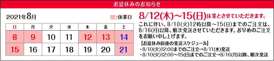 ・8/10(火)12:00までのご注文→8/11(水)発送